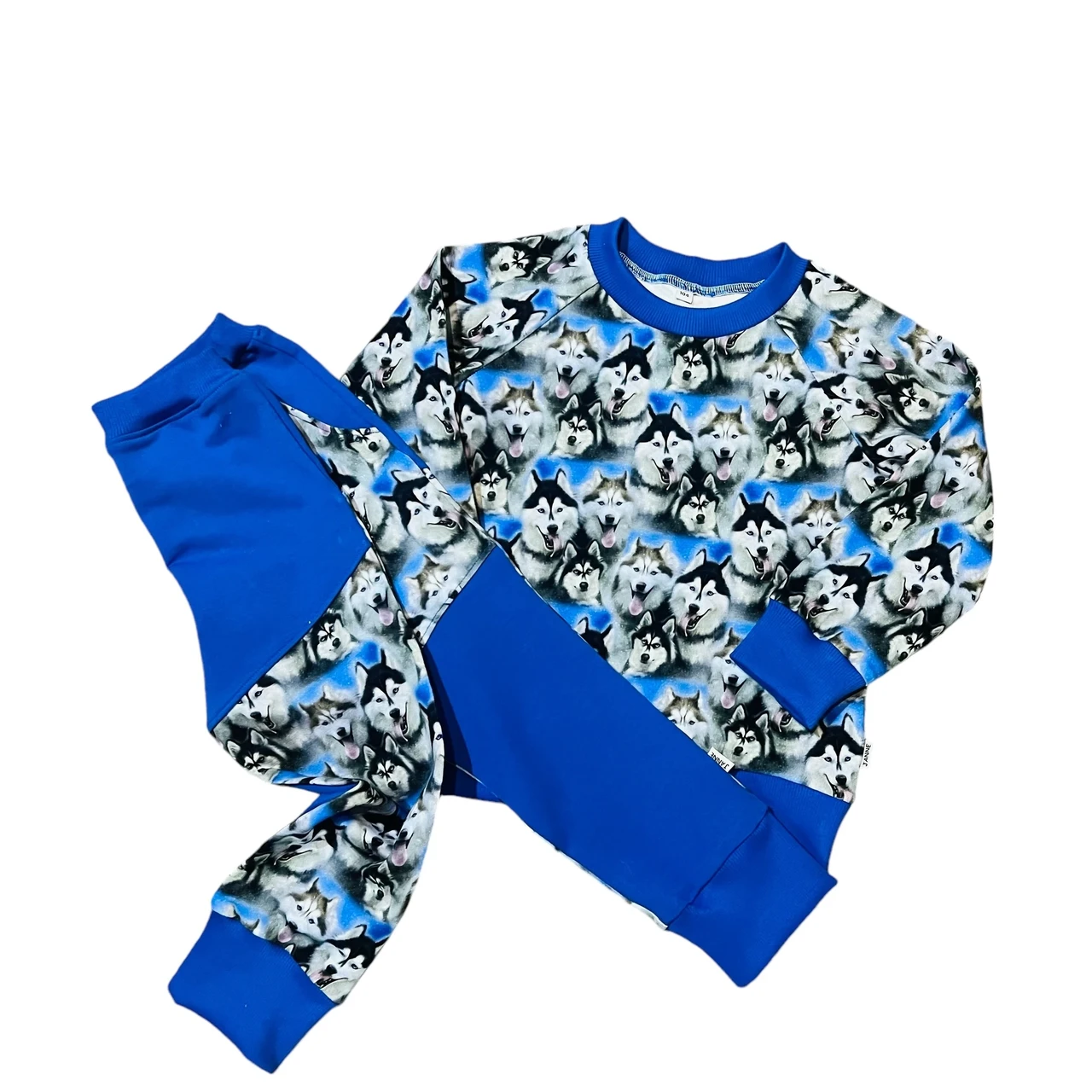 Stiilne ja lustakas dressikomplekt Huskydega koosneb pusast ja taskutega dressipükstest.