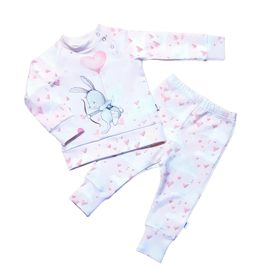 Roosavahune südamete ja pilvedega roosa dressikomplekt pisikesele preilile.
