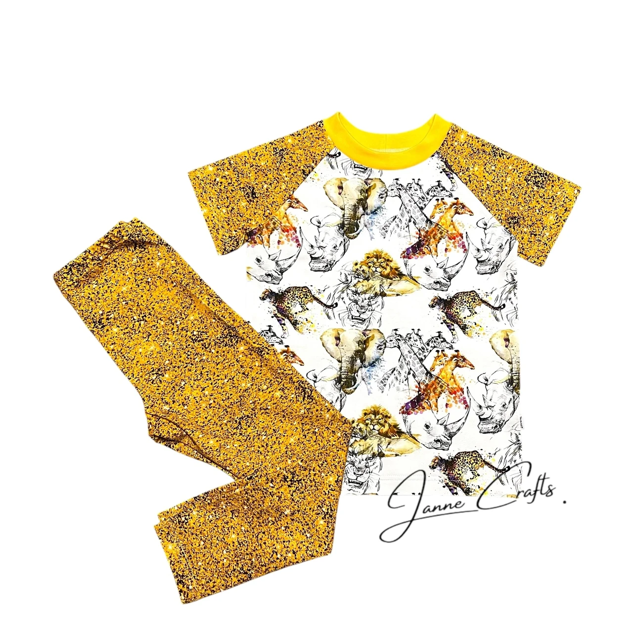 T-särk ja retuusid - kuldsed loomad / 110cm