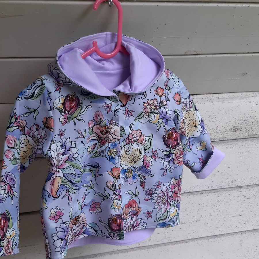 Võrratult kaunis jakike MILAN. See armas pluus on valmistatud kahekordsest puuvillasest kangast. Pealmine lilleline kiht on õhukesest dressikangast ning voodriks olev lilla on trikookangas.