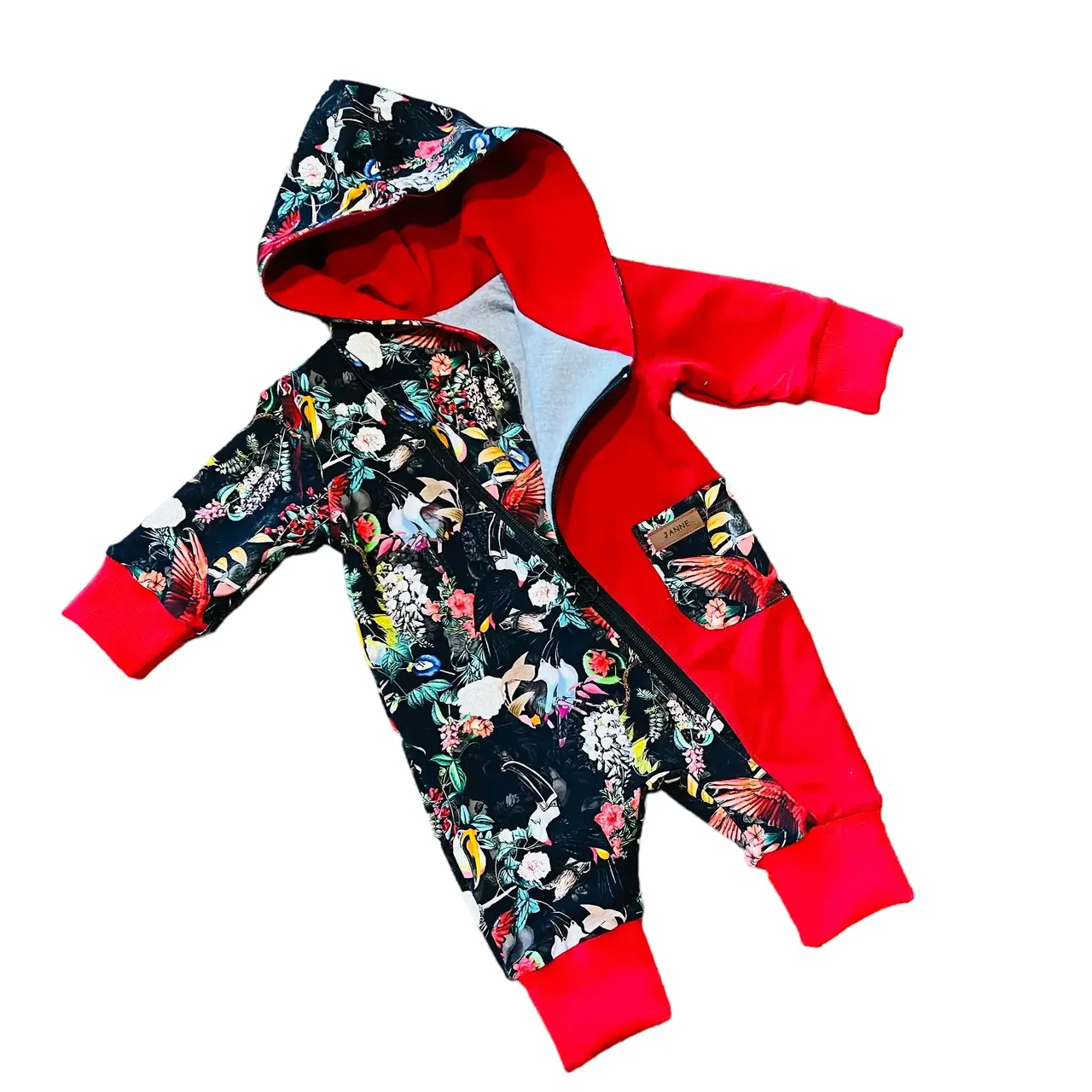 - Stiilne värvipaigutus: vasak esihõlm ja vasak varrukas ühevärviline punane ning ülejäänud stiilselt mustriline