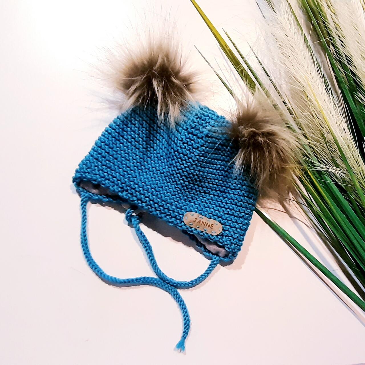JANNE originaaldisainis klassikaline talvemüts SimpleBaby meresinises värvitoonis. 100% meriinot ja kunstkarusnahast mütsitutid. Kästitsi kootud soojus! See imeliselt soe talvemüts on