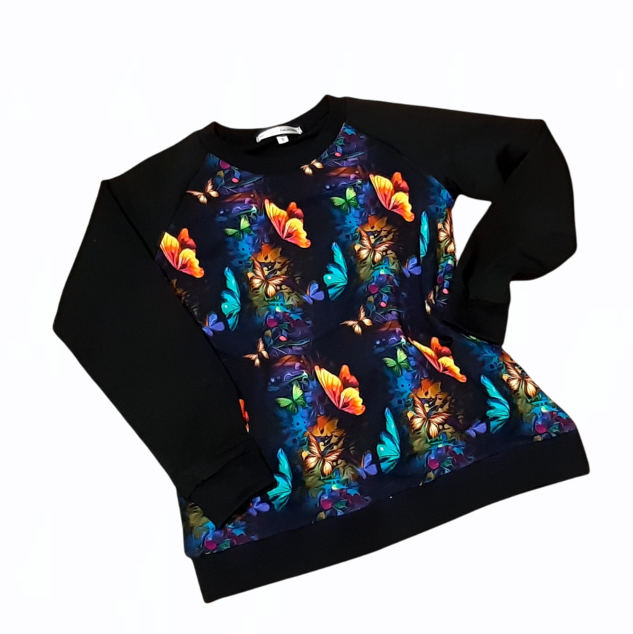 Naiste pusa STAR imeliste värviliste liblikatega. Nii lihtne, stiilne, kuid luksuslik kooslus. Dressika-laadne pluus on ideaalne riietus tööle, õue, külla ja koju. Liblikapusa saab kanda läbi terve aasta: suveõhtul, sügispäeval, talvel jope all ning kevade saabudes. Kaunilt värvilised liblikad mustal taustal esiosal ning mustad varrukad ja seljaosa. Sära igasse päeva!